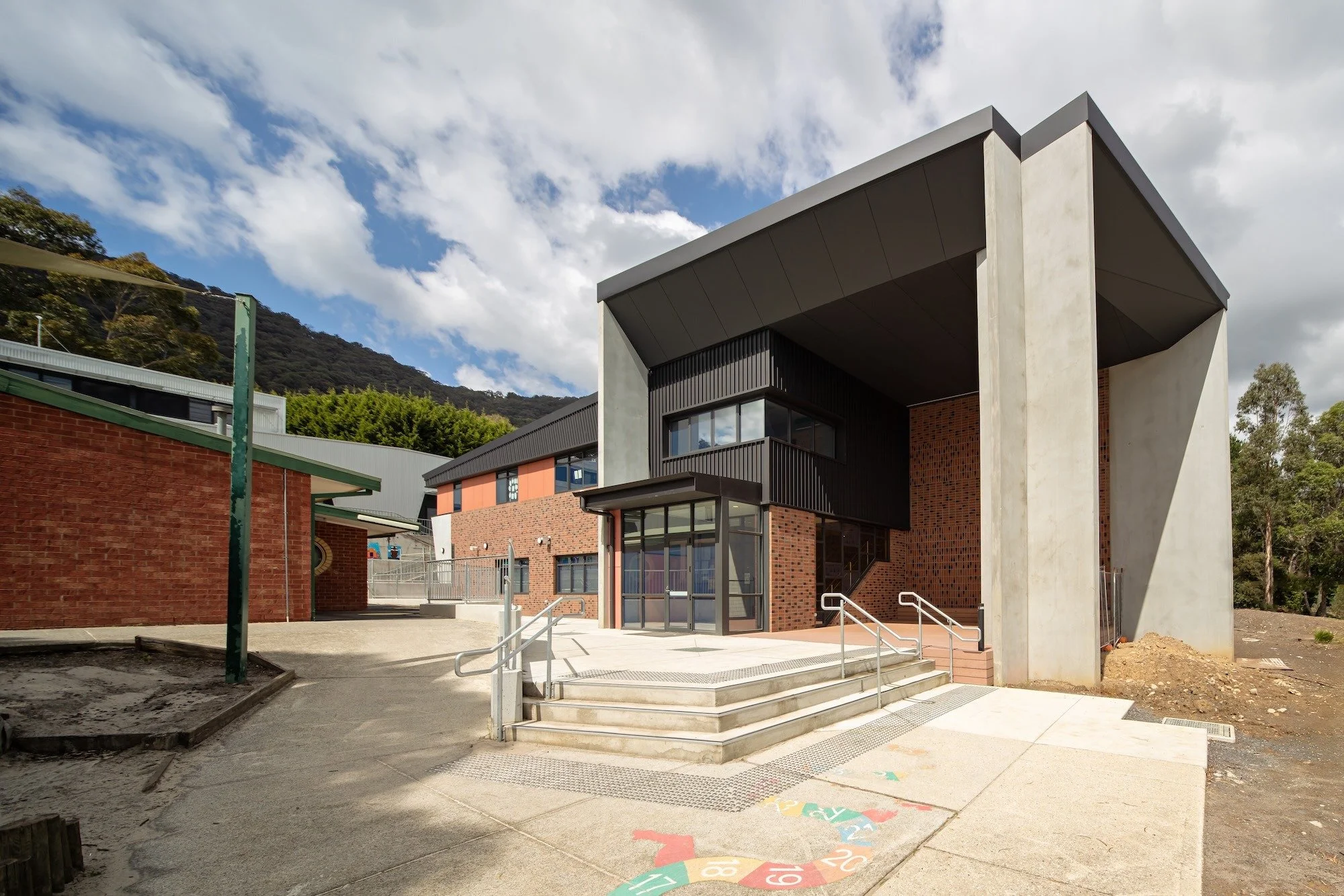 The Billanook Primary School project, located in Montrose, Victoria, consists of modernisation works and a two-level learning building containing general learning areas, and STEAM spaces including a food technology space, a science room and an art room. The project was designed for a significantly sloping site on the slopes of Mount Dandenong, with a high-level bushfire attack classification determining that the build had to be bushfire safe. The adjacent gymnasium, and earlier school project, is a Designated Fire Shelter for the local community.